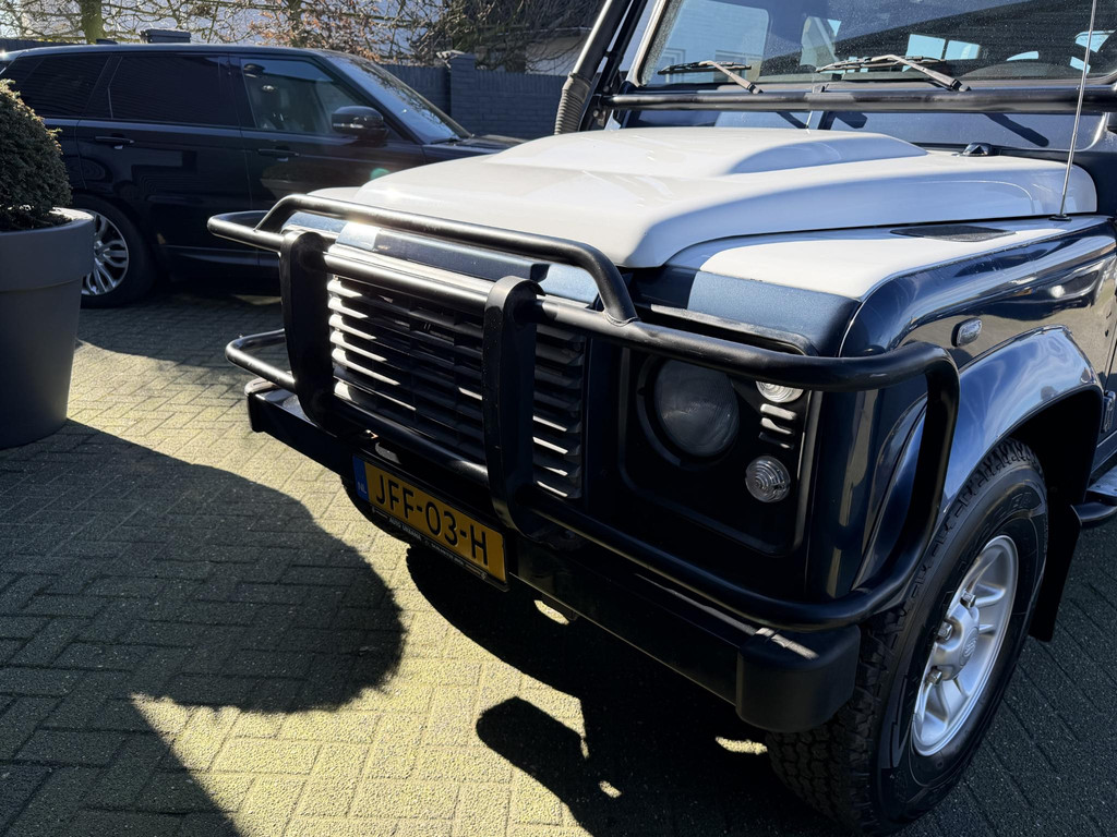 Deze prachtige Defender is als verhuisgoed meegekomen met de Nederlandse eigenaar die toen in Spanje heeft gewoond. Voordeel dat hij uit Spanje komt is dat hij niet de bekende roestplekken heeft.